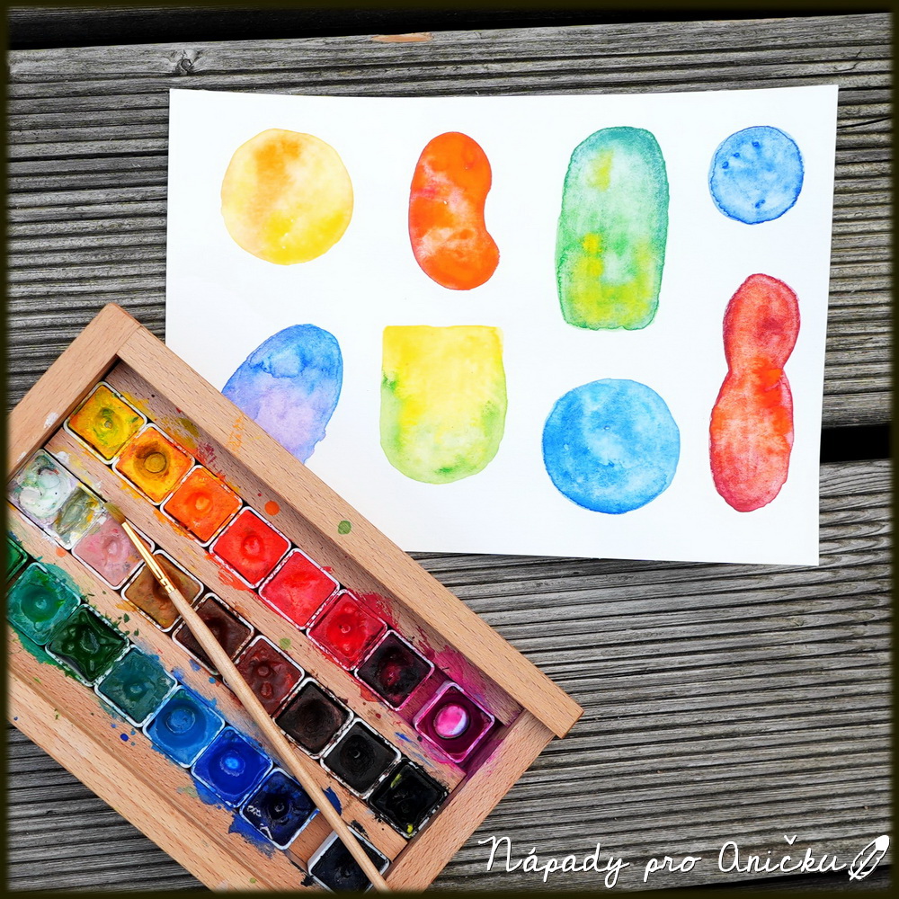 Na tvrdý papír namalujeme vodovkami či akvarelkami kolečka a různé další tvary. Pohrajeme si se zapíjením barev do sebe. Až barvy zaschnou, dokreslíme černou fixou detaily ptáčků. Jako oči můžeme nalepit kolečka z děrovačky případně větší kolečka. Aktivitu berte jako hru s barvami a trénink fantazie, vymýšlejte nejroztodivnější ptáčky.