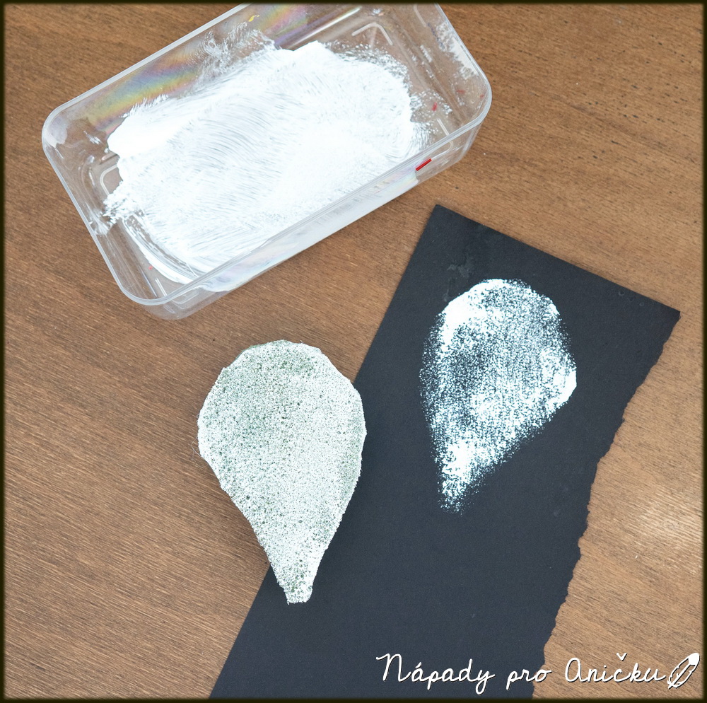 Na toto halloweenské tvoření potřebujete tmavý tvrdý papír, bílou barvu (temperu nebo akrylovou) a houbičku na nádobí - klidně použitou.
